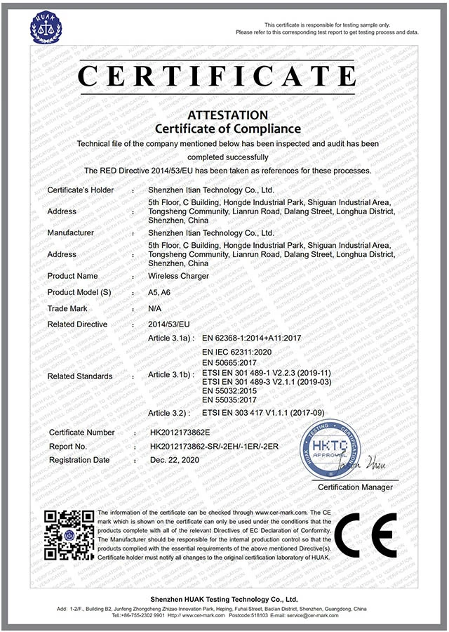 Shenzhen Huagon Trading Co., Ltd., Ltd. specializes in wireless charging solutions, including R&D and production of PCBA, chargers, and mobile power supplies. The core team consists of senior chip design experts with 10-20 years of experience.