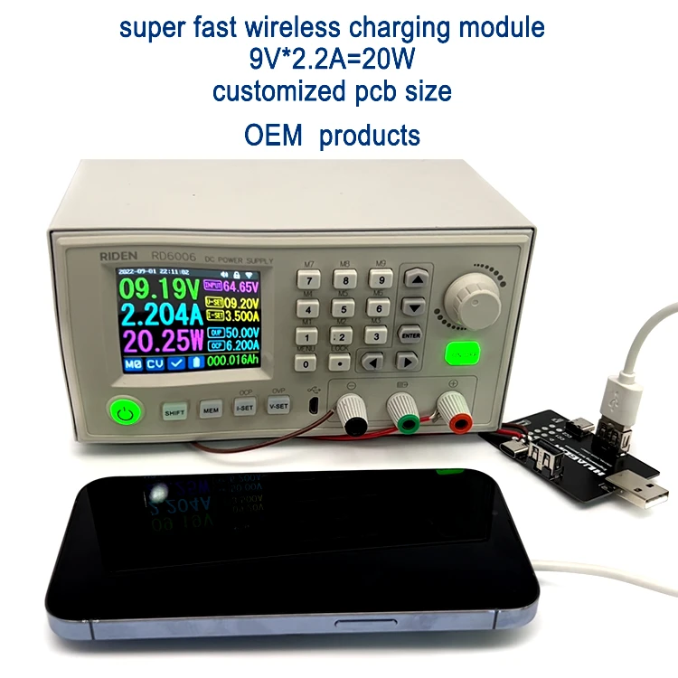 We are mainly engaged in the R & D and customized designing and production of wireless charging module for 15W 50W 200W power, Power bank module for 18W PD 45W 65W 100W Power , car adapter with A/C PD 45W Power .