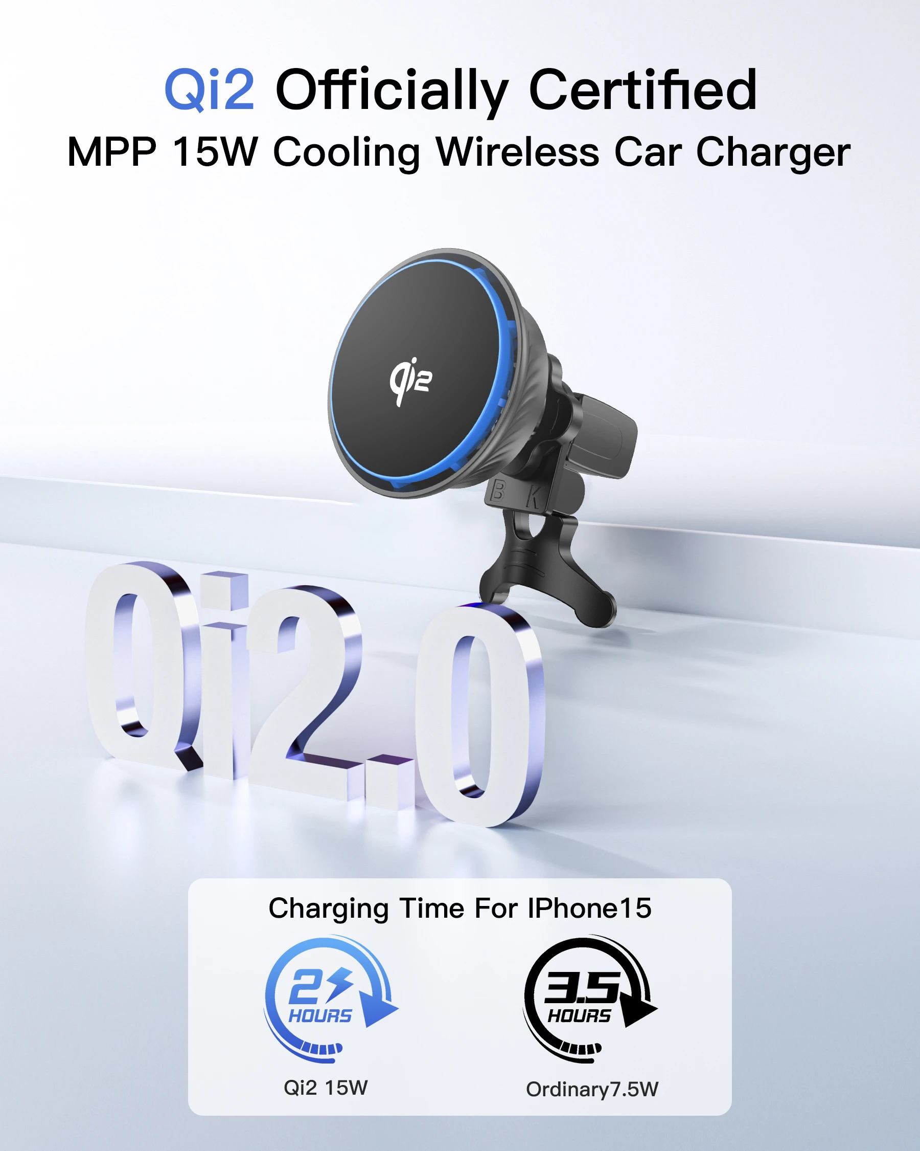 Qi2 MPP qi2 certified QI TWO fan cooling wireless car charger car wireless charging cooling